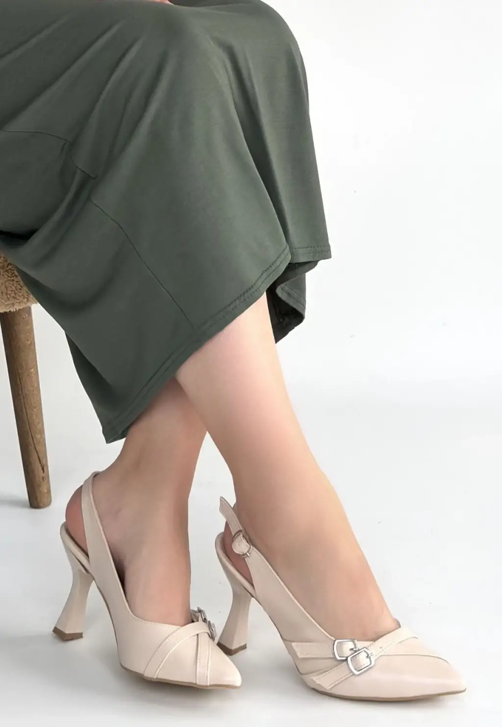 • Jedda Bej Cilt Topuklu Ayakkabı