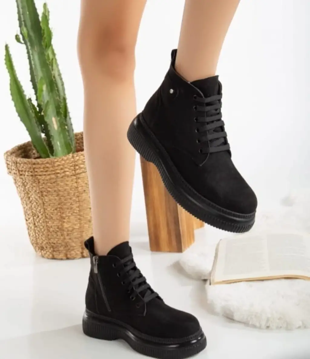 Jiwa Siyah Süet Bağcıklı Bot
