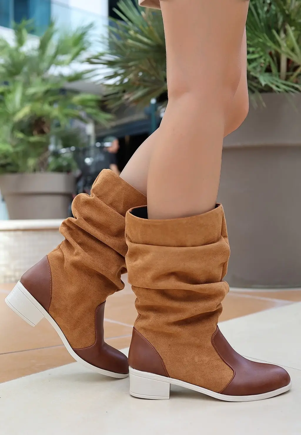 • Jolin Taba Cilt Süet Detaylı Çizme
