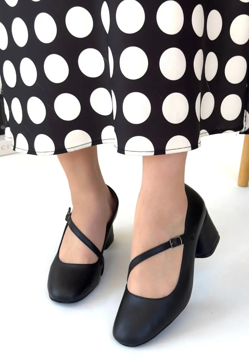 • Kier Siyah Cilt Topuklu Ayakkabı