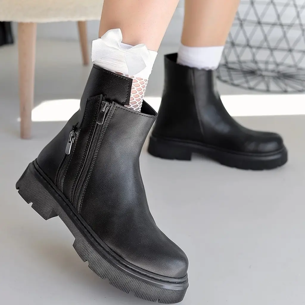 Detay : Topuklu Yandan Fermuarlı Bağcıklı Bot