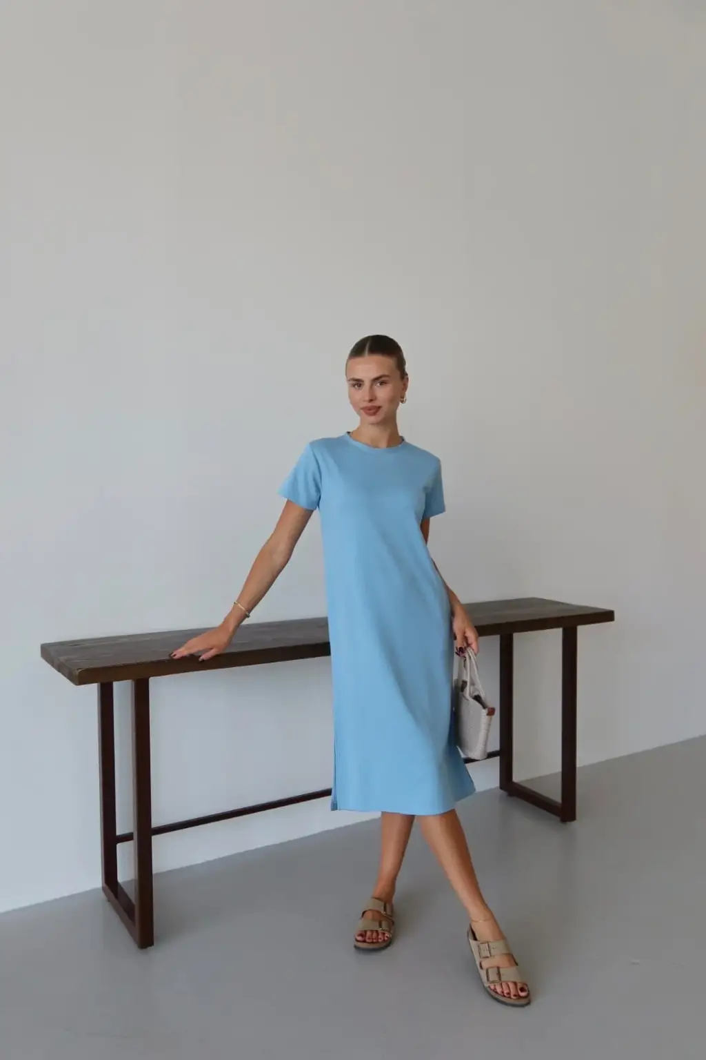Modal yırtmaçlı elbise mavi pt