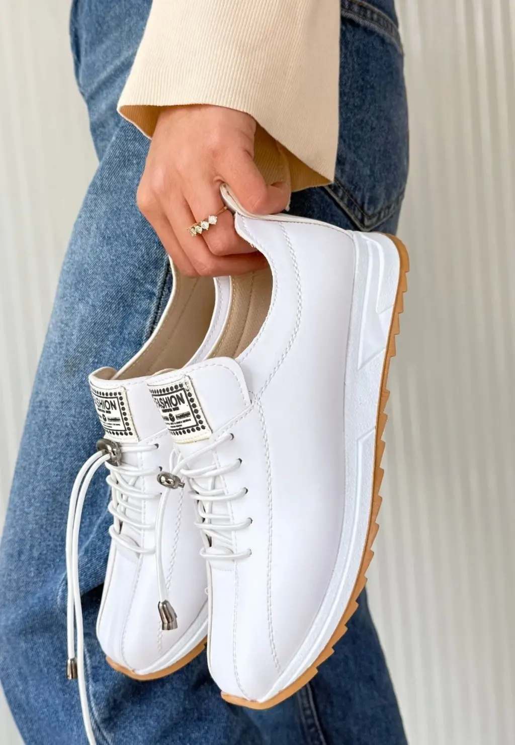 • Monya Beyaz Cilt Bağcıklı Spor Ayakkabı