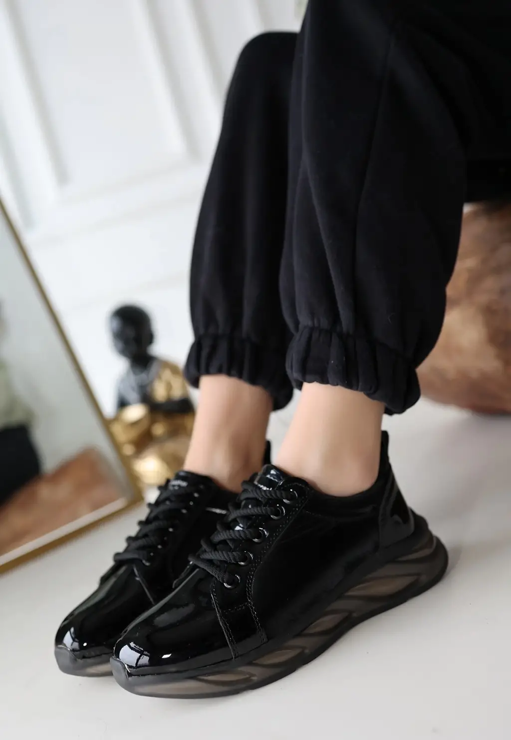 • Piona Siyah Rugan Gri Tabanlı Spor Ayakkabı