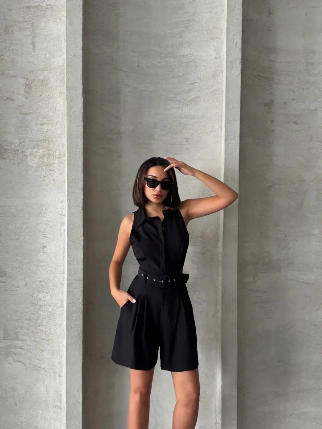 KAZAX marka yakalı şort tulum, şıklık ve rahatlığı bir arada sunuyor. İster günlük kullanım için tercih edin, ister özel bir davette fark yaratan bir görünüme sahip olun. İşte bu tulumun öne çıkan özellikleri: