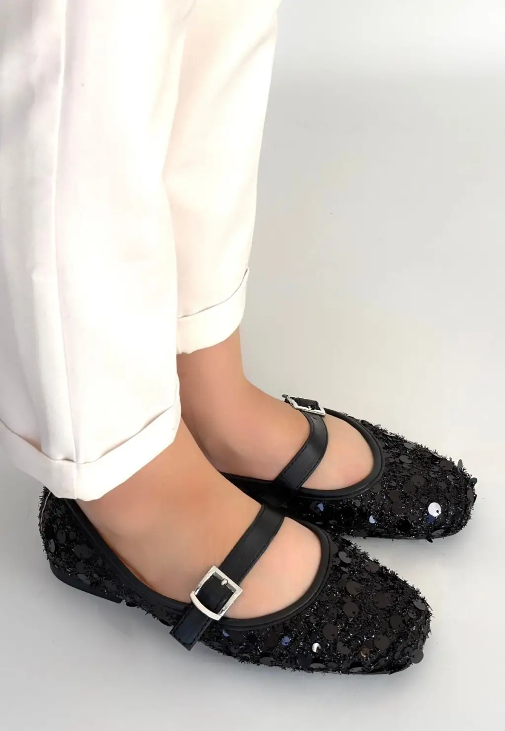 • Zaty Siyah Süet Siyah Pullu Babet Ayakkabı